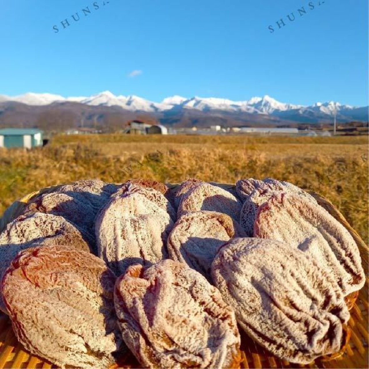 ※干し柿の外側の白い粉は乾燥して柿の糖が浮き出たもので甘さの証拠です、安心してお召し上がりください