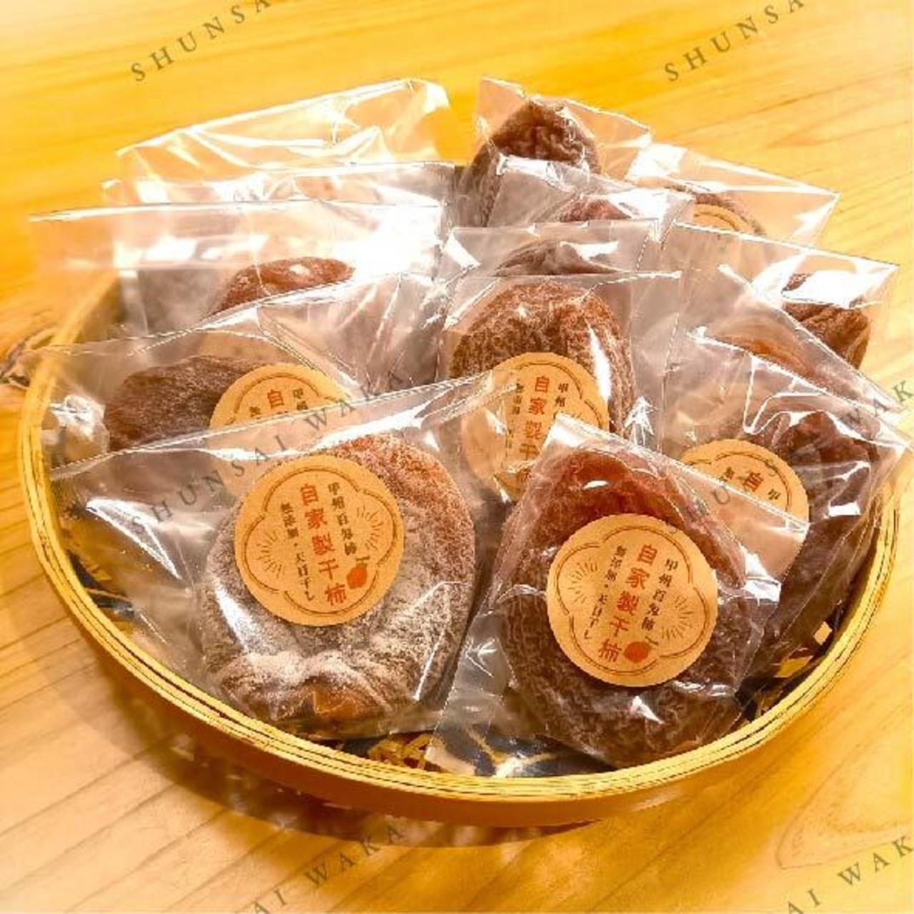 高級品とされる1つで350~500g程ある大きくてジューシーな山梨県産甲州百匁柿(こうしゅうひゃくめがき)を丹精込めて天日干しし、無添加で仕上げた自家製干柿
