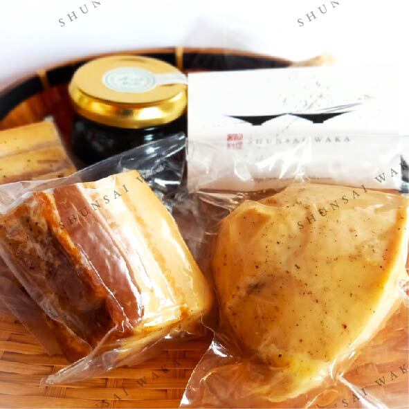 無添加のスモークチキン、ベーコンと、新商品の国産海苔の佃煮をセットにしたお得なセットです!